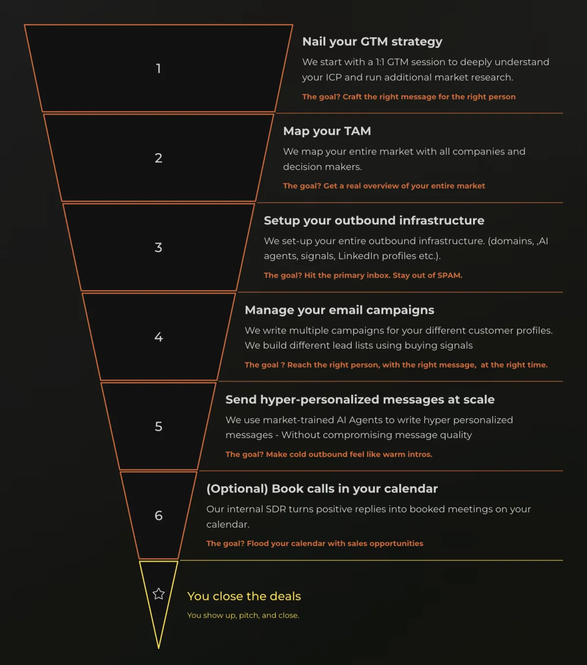We give you a real-time dashboard that tracks booked calls, positive replies, email-to-booking ratios, and other key metrics. You immediately see which campaigns perform best—no guessing required.